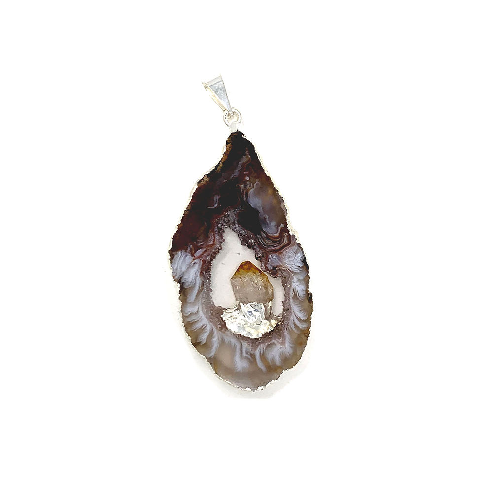 Geode Slices w/Clear Citrine Point S/P Pendant. (Price is per Bag of 10 Pieces)